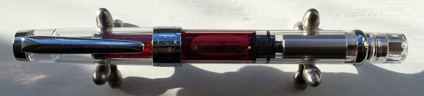 The 3008 in the pictures was tested as a daily use pen both at work and at home spending time in my bag and my pockets (in a Mala sleeve), it only leaked once when I dropped it and even then, it only splattered inside the cap which was to be expected. It’s had several ink changes and neither the clear feed nor the barrel/section have stained; I use Diamine Imperial Blue and its currently loaded with KWZ Thief’s Red. It writes very smoothly and even though it’s a fine nib it leans towards wet and I’ve experienced no skipping or hard starts.