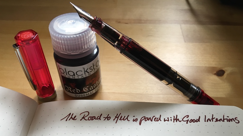 This month I’ve chosen Blackstone’s Red Cashmere, which is a limited edition ink, from the SuSeMai series, with a very interesting history full details of that history can be found here: http://blackstone.ink/index.php/susemai-series-red-cashmere