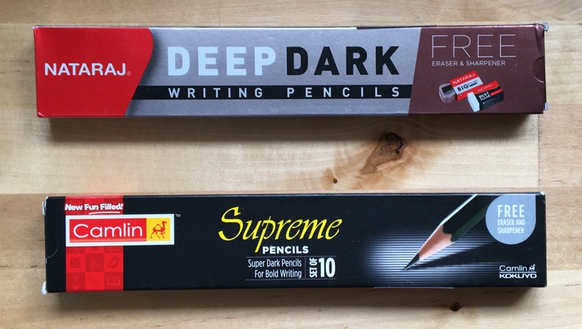 So, recently, I was wandering around eBay and I decided to search for Nataraj just to see if there was anything new or unusual, there wasn’t; all the usual suspects showed up and whilst looking at the listings I noticed that a seller (Zofaxworld) was advertising packs of Nataraj Deep Dark and Camlin Supreme pencils; both packs of ten and both including an eraser and a pencil sharpener.